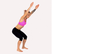 5)Bacaklarınızı kalça genişliğinde açarak dengenizi sağlamak için kollarınızı öne doğru kaldırın. Başınız dik ve sırtınız dümdüz olması önemli. Sırtınızın pozisyonu değişmeden bacaklarınız yere paralel olacak şekilde yere çömelmeli ve eski pozisyonunuza dönmelisiniz. Önemli olan çömeldiğinizde dizlerinizin ayak ucu hizasını geçmemesi ve ağırlı topuklara vermeniz. Zor bir hareket olduğu için 10 tekrarla başlayıp zamanla arttırabilirsiniz.