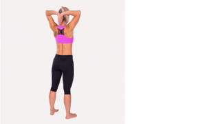 Kollarınızı her iki yana doksan derece olacak şekilde açın. Bu esnada kürek kemiklerinizin arasında bir şey varmış ve onu sıkıştırıyormuş gibi düşünebilirsiniz. Omuzlarınızı gidebildiği kadar geriye itin. Daha sonra açıyı bozmadan kollarınızı başınızın önünde birleştirin.