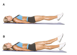 3) Karın bölgesinin alt tarafını güçlendirmek oldukça zorludur. Bu egzersiz,karın egzersizleri içerisinde kaslarınızın alt kısımlarını yoğun biçimde çalıştıran en etkili harekettir. Halı ya da egzersiz matı üzerine sırt üstü yatın. Ellerinizle sabit bir objeye tutunun ve bacaklarınızı bitiştirerek aynı anda yukarı doğru kaldırın, biraz daha yavaş bir şekilde aşağı indirin. Hareketi üç set ve on tekrar olarak yapın.
