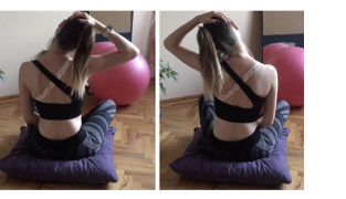 4) Ayaklarınızı omuz genişliğinde açın. Kollarınızı başınızın arkasında konumlanacak şekilde dirseklerden bükün ve avuç içlerinizi bir araya getirin. Birleştirdiğiniz avuçlarınızı aşağı doğru itin ve başlangıç konumuna getirin. Bu hareketi 20 kez tekrarlayın ve 10-15 sn dinlenin. Günde 10-15 kez ( 1 set 20 kez olacak şekilde) tekrarlayabilirsiniz.
